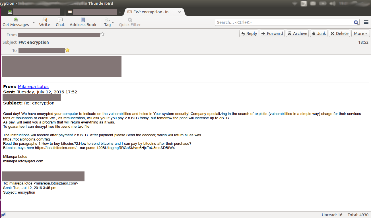 Danas smo imali priliku da budemo kontaktirani od strane jedne domaće firme koja je bila žrtva hakerskog napada ransomver virusom.